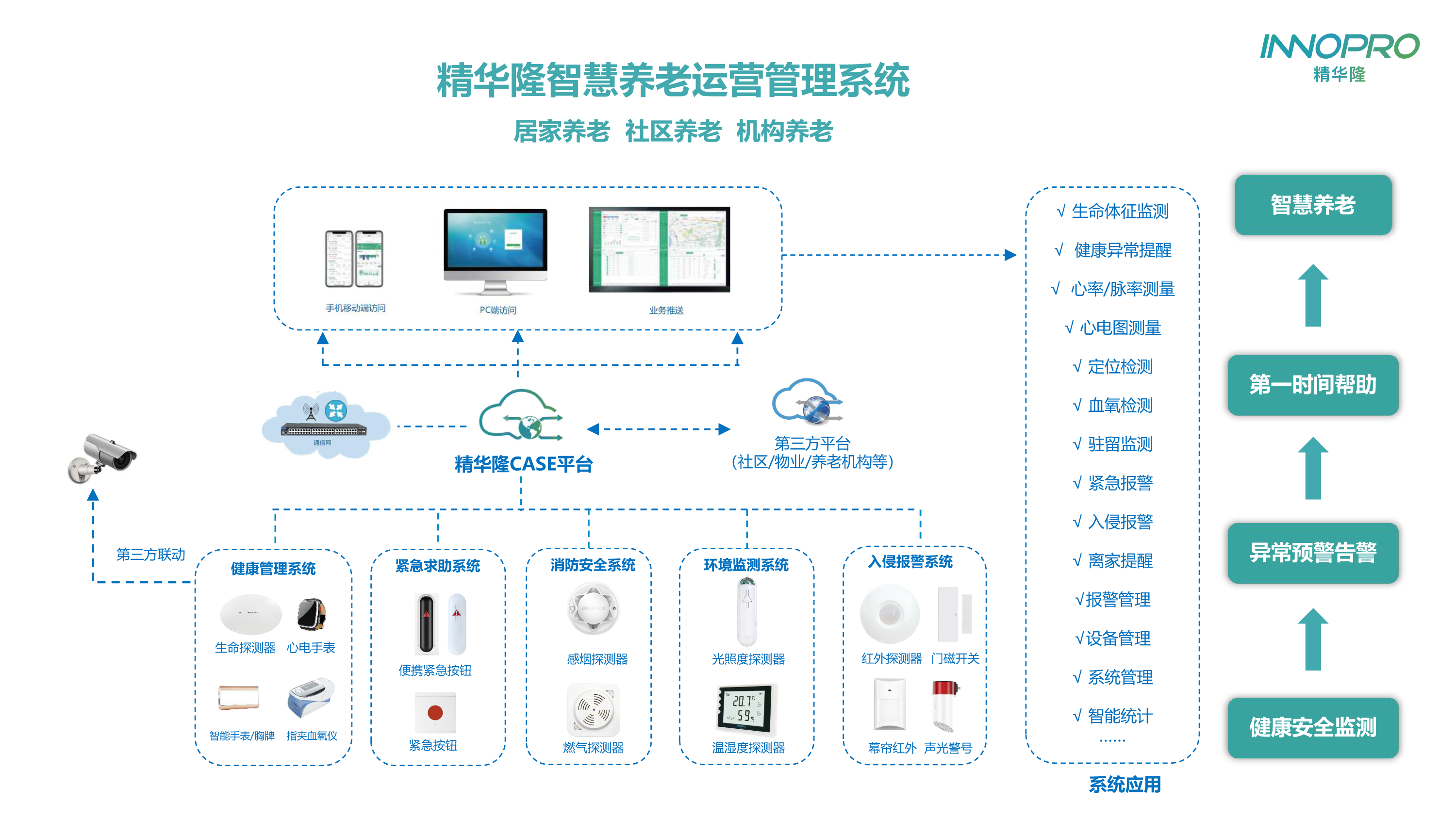 此外,精華隆智慧養(yǎng)老解決方案還從防盜報(bào)警、健康監(jiān)測、環(huán)境等方面為老人創(chuàng)造一個(gè)健康、舒適的居家環(huán)境。因各種原因,我們不能陪伴在老人身邊,但通過智能輔助設(shè)備,隨時(shí)掌握老人的健康、安全、居家活動(dòng)等情況,當(dāng)出現(xiàn)異常狀況,立即知曉,及時(shí)確定老人安全狀況,并提供幫助,盡可能降低意外造成的傷害。