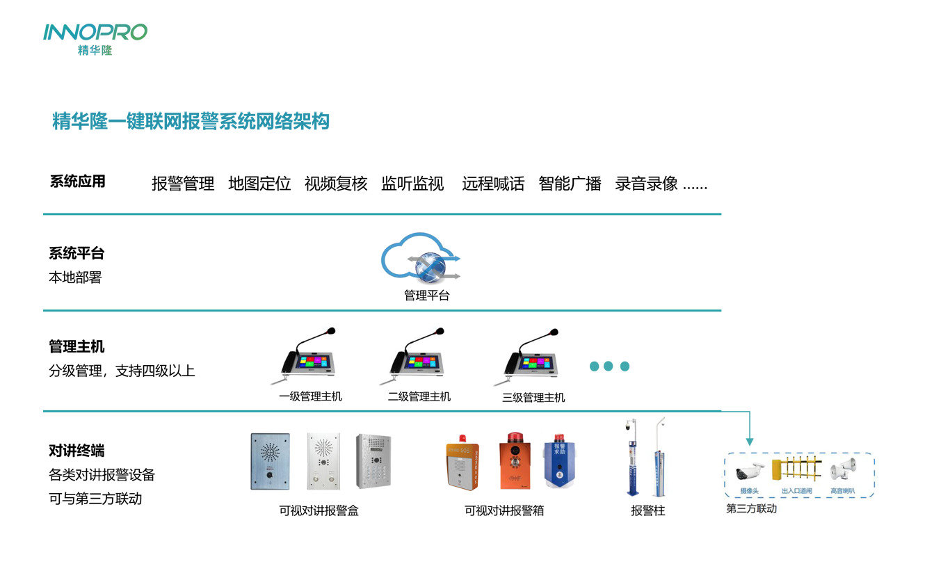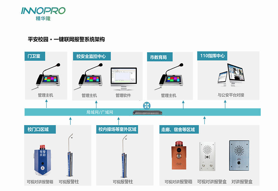 INNOPRO精華隆一鍵聯(lián)網(wǎng)報(bào)警系統(tǒng),除了用于校園外,還廣泛用于醫(yī)院、景區(qū)、公園、銀行、軌道交通、看守所/監(jiān)獄等平安城市建設(shè)場景。