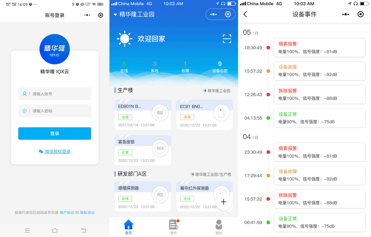 “精華隆智能”小程序作為精華隆云平臺、APP、微信公眾號管理的補充,具有以下業務功能: